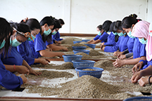 Our manual sorting employs over 70 female seasonal workers manually sort beans to ensure that all beans are truly excellent. Using handpick technique, imperfections such as black or brownish beans, bad beans, dirt, stones and others are eliminated for a ready-packed export quality.